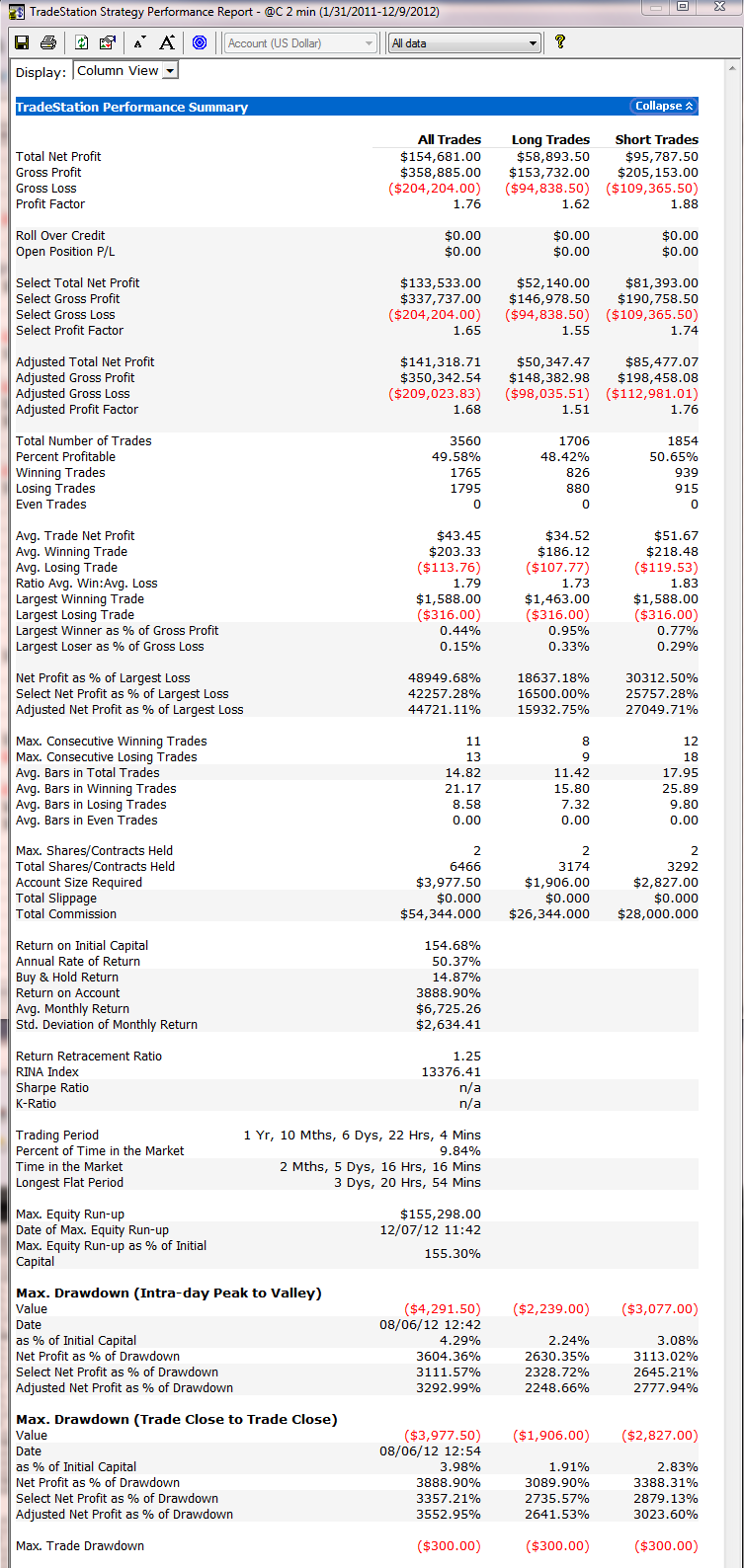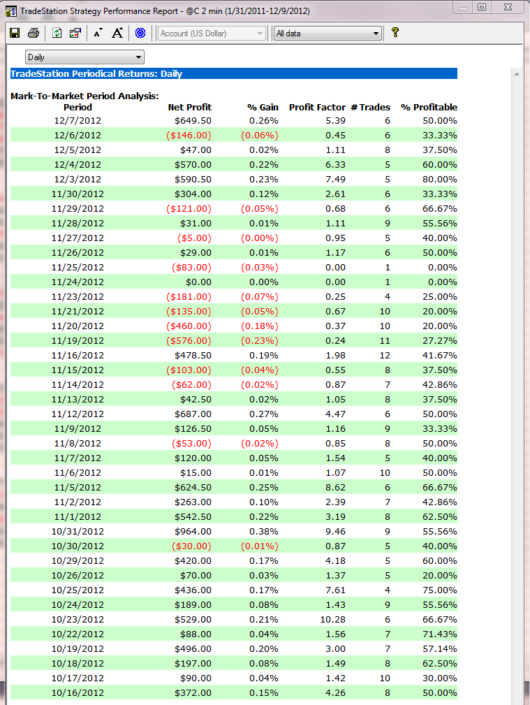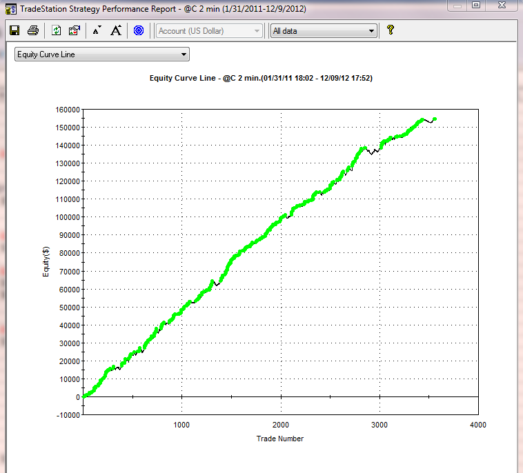 4 Steps Trading System Performance Data - 2 minute Corn Chart