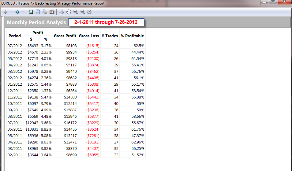 data below includes $8.00 per standard lot deduction for commissions.
