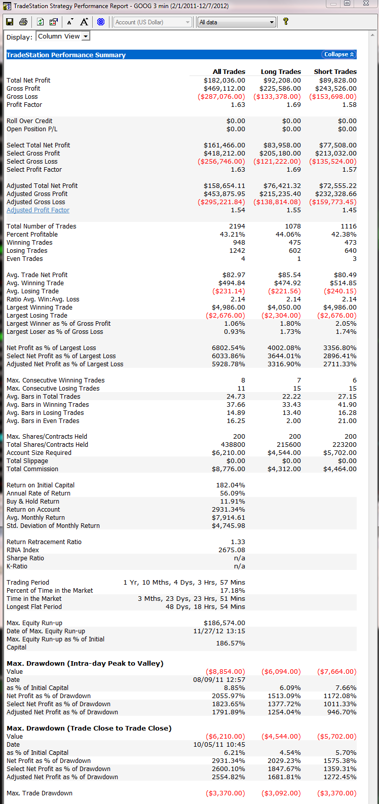 Strategy assumes a 200 share initial position taking profits of $3.25 per share on 100 shares as a scale out exit at target 1. The remainder of the position is held until it is reversed, stopped out or reaches the end of the trading day. |