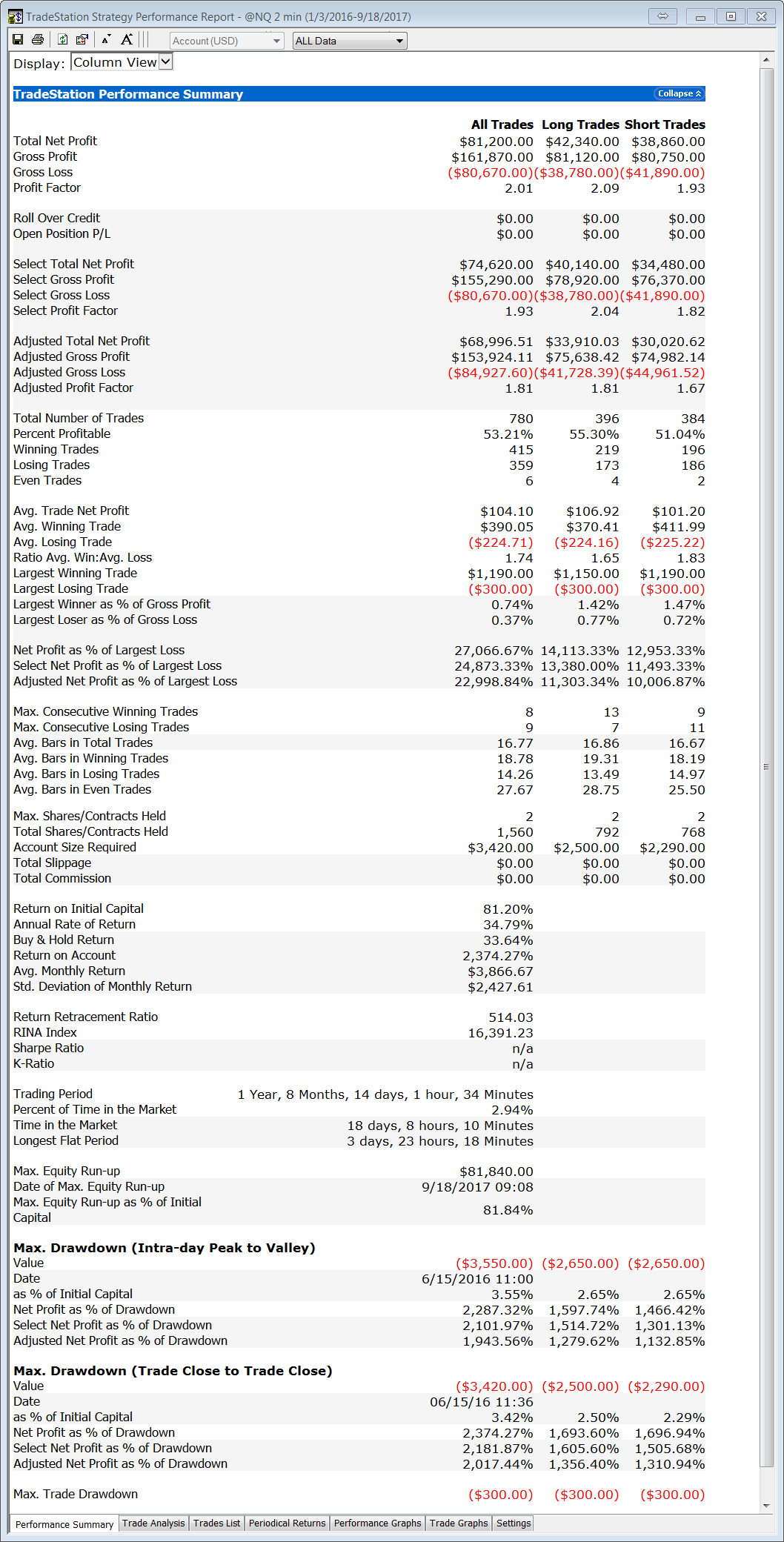 The data below left reflects the results of HYPOTHETICAL trades for the GV NQ 2Minute Limited System Data Range For This Period Is Found At the top Of Each Image Below