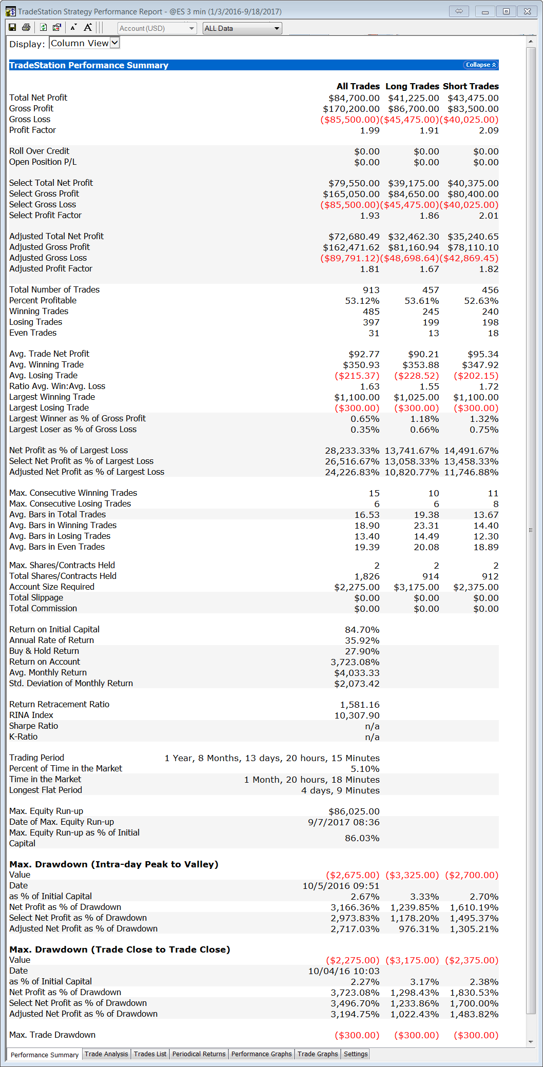 The data below left reflects the results of HYPOTHETICAL trades for the GV ES 3 Minute Limited System Data Range For This Period Is Found At the top Of Each Image Below