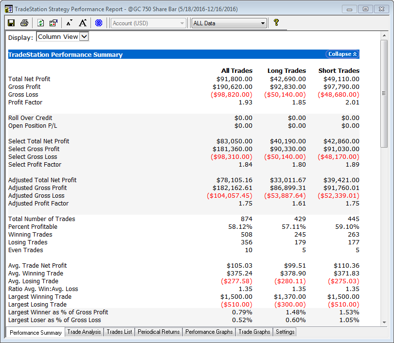 Data Available For This Item In tradeStation