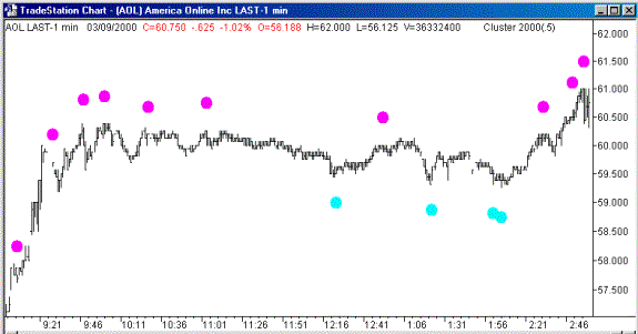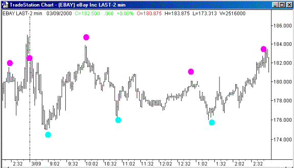chart below is a two-minute chart of E Bay from March 9, 2000. Note the