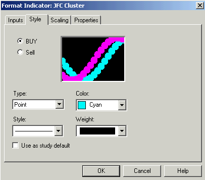 buy and sell signal as calculated by the JFC Cluster Indicator are not placed at