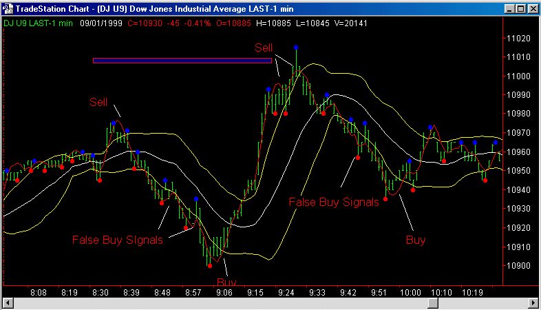 Recall from our discussion in the section regarding the JFC Exhaustion Indicator that at the time we identified several signals identified by this indicator which would not have produced profitable results. This chart is a reproduction of this same day with the false buy signals clearly labeled.