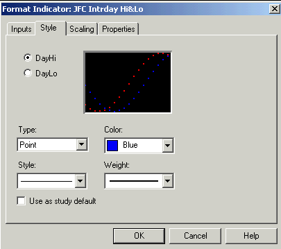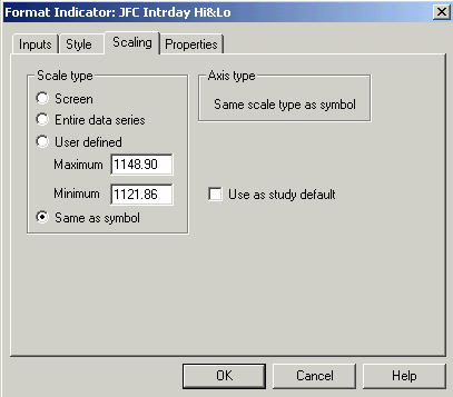 is very important that the scaling for the JFC Intraday Hi Lo Indicator be set to