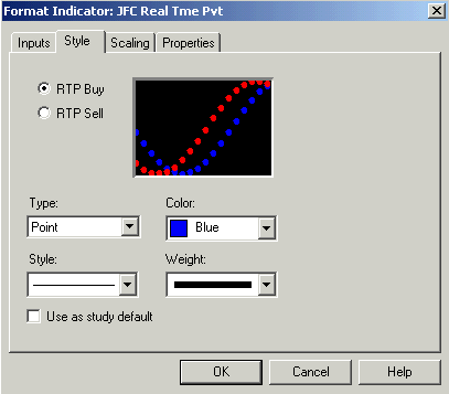 JFC Real Time Pivot has two plots, RTP Buy, which is defaulted to Blue and