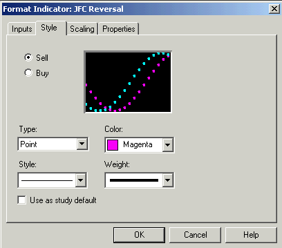 style inputs for the JFC Reversal Indicator should be set as above. The sell tab