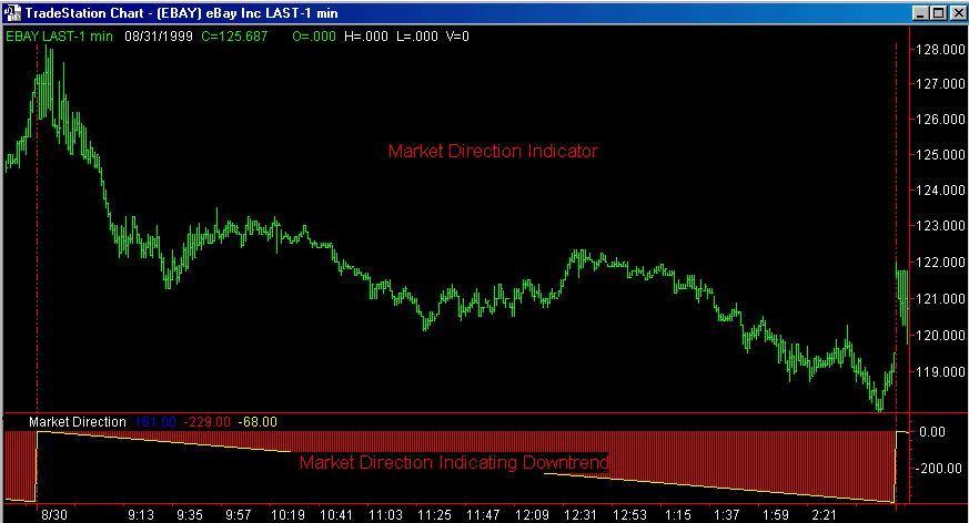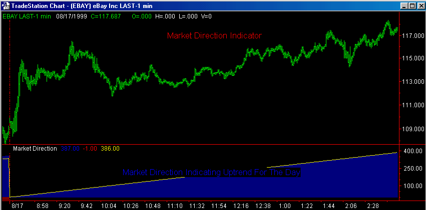 The JFC Market Direction Indicator is used, in conjunction with the Clayburg Directional Day Filter, to predict the direction of the major trend early in the trading day. The