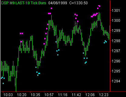 magenta dot above a price bar indicates that the market may have